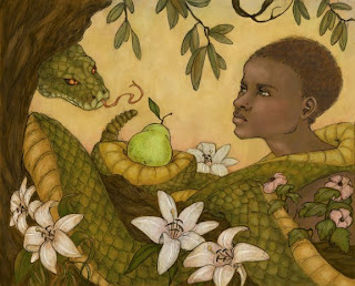 Beautiful, I love the way your piece displays that the serpent wasn't a menacing physical threat, but a more of a cunning intellectual/spiritual threat. Great work!